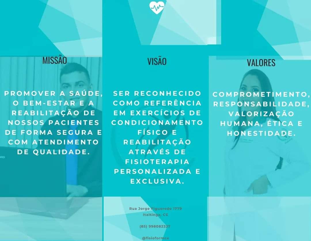 Fundada em 11 de janeiro de 2022, a fisioform pilates é uma clinica de fisioterapia e estudio de pilates localizada no bairro Ancuri, Itaitinga, conta com uma area total de 54m2 area climatizada, atendimento exclusivo para fisioterapia, e no pilates com quatro alunos por fisioterapeuta, prezamos primeiro pela qualidade no serviço, acreditamos que um atendimento personalizado e humanizado a recuperação do paciente é mais precisa, e assim conseguimos fidelizar mais pacientes a procurar nossos serviços, os idelizadores dessa empresa nasce da união do formado em administração Yvisom Gomes, atuante na area de vendas, marketing e comercio e da fisioterapeuta Nataly Amorim.